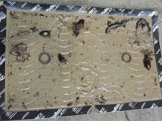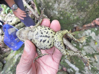ナガレヒキガエルのオタマ?、ヒダサンショウウオ?、ナガレヒキガエル、ヒキガエル、、サワガニ、コガネグモ、エビグモの仲間?、プラナリヤ