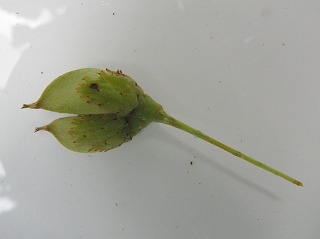 【左】プラナリヤ 【中】ナガレヒキガエル 【右】イヌブナの果実