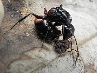 【左】:ヒゲシロホソコバネカミキリ? 【中】倒木更新。ヒノキ、ミネカエデ、マツなど 【右】ムネアカオオアリ