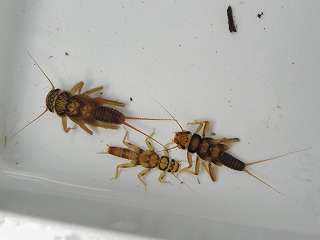 【左】ヒゲナガトビケラ 【中】オオヤマカワゲラ? 【右】ナガレヒキガエルのオタマ?