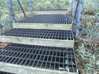 【左】整備された登山道 【右】林床のササは鹿に食べられ地肌が露出