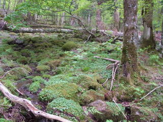 ミズナラ、ブナ、トウヒ、ウラジロモミ、ジャケツイバラ、シャクナゲ、シナノキ、サワクルミ、カエデ類、オオカメノキ、トチノキ、ヒメシャラ、ツタウルシ、サワフタギ、ミヤマシキミ、ミヤマカタバミ、ワチガイソウ、ヒメミヤマスミレ、チャルメルソウ、バイケイソウ、キランソウ、カワチブシ、ギンリョウソウ、ツタウルシ、テンナンショウの仲間:<コケ>スギゴケ類、ヒカゲノカズラ、ホソバトウゲシバ、他