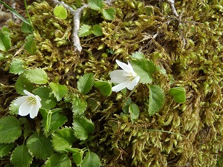 【左】苔むした林床 【中】ワチガイソウ(ナデシコ科) 【右】ミヤマカタバミ