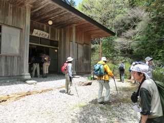 【左】大台ヶ原ビジターセンターで事前レクチャー受講 【右】まず、大台教会にお参り