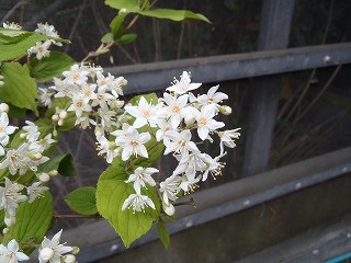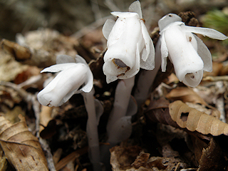 【左】ウツギ 【中】ミヤマネコノメソウとイワセントウソウ(白) 【右】ギンリョウソウ、花の中に虫がいます