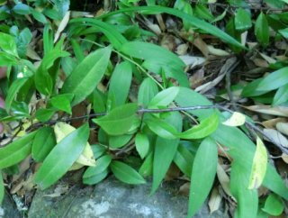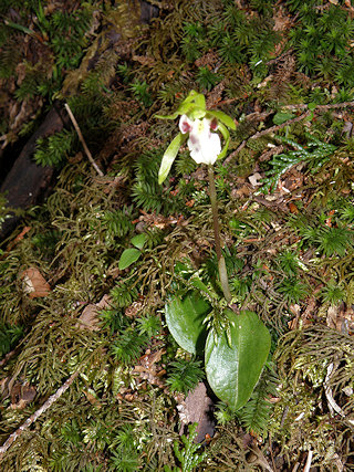 【左】イチヨウラン(一葉蘭)? 【中】イチヨウラン(一葉蘭)? 【右】アカチシオタケ?