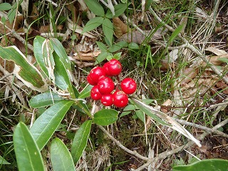 【左】ミヤマシキミ 【中】ムロウテンナンショウ 【右】ミネカエデ?