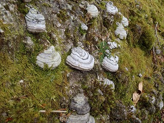 【左】ハカワラタケ? 【中】ツガサルノコシカケ 【右】ツリガネタケ