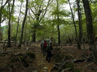 初日は、6時に大池公園テニスコート横駐車場へ集合し、車に分乗し出発。途中、他支部の方々と合流し一路、大台ケ原へ向かう。途中道路工事で迂回するなど思わぬ時間がかかり、予定時刻の10:30に30分遅れ、11時に全員到着。
