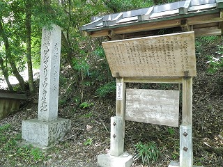 【左】ニホンオオカミ像。生息最期の地の東吉野村 【中】ツルマンリョウ(国天)が生育する丹生川上中社 【右】ツルマンリョウ(国天)の看板