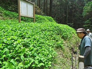は、早朝、希望者のみAM3時に集合し「日出ヶ岳」へ日の出を見に行く。美しい朝日が見られたようだ。出発まで各自で朝食と自然観察、ビジターセンター展示物をみる。 2日目の最初の観察ポイント、「丹生川上神社」で国の天然記念物「ツルマンリョウ」を見る。宮司さんより様々なお話を伺う。近くの川ではカジカガエルの声を耳にする。昼食を摂り、午後は、ニホンオオカミの記念像を見ながら南限のスズラン群生地、「吐山スズラン群落」へ向かう。スズランはちょうど花の時期であった。ここでは、シュレーゲルアオガエル、アマガエル、アカガエル、トノサマガエルと4種類のカエルに出会えた。そして帰路につく。