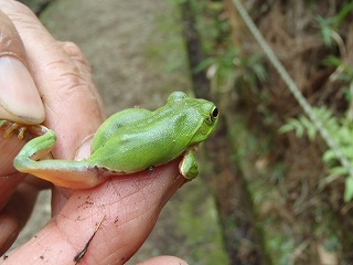 【左】シュレーゲルアオガエル(吐山で) 【中】アマガエル(吐山で) 【右】トノサマガエル(吐山で)