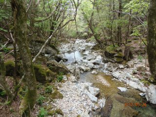 昼食は、川のほとりで摂る。川ではオオダイガハラサンショウウオはいないかと探したが、出会うことはできず、無数の小さな川虫たちが生息していた。