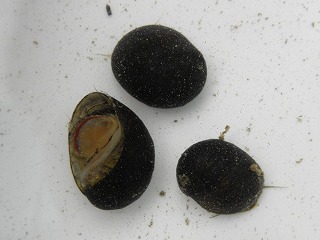 【左】アメンボ 【中】アメリカジガバチ? 【右】イシマキガイ