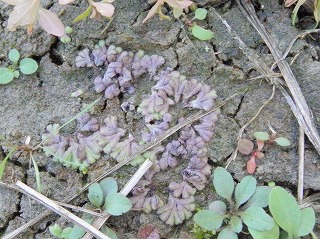 【左】ミズワラビ(食可)   【中】イチョウウキゴケ。知多では所々で見られるが、準絶滅危惧種になっている   【右】イスノキ(ヒョンノキ)の虫こぶ。笛になる