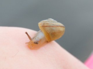 【左】ヒメタニシとシジミ         【中】イセノナミマイマイの赤ちゃん         【右】スクミリンゴガイ(ジャンボタニシ)の卵の抜け殻