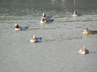 ハシビロガモ ダイサギ ホシハジロ ヒドリガモ カルガモ コガモ アオサギ コサギ カワウ ハクセキレイ