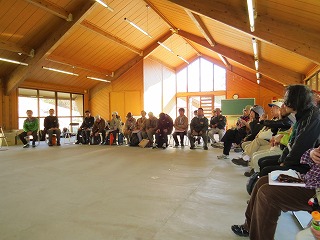 午後 は、交流館にて、まずは、新人の皆様の自己紹介と要望、続いて、各支部ごとで自己紹介、尾張支部には、パワーポイントで支部の活動紹介をしていただきました。最後に、協議会への要望など河江さん特製のドングリクッキーとドングリコーヒーをいただきながら、アンケートに答えていただきました。