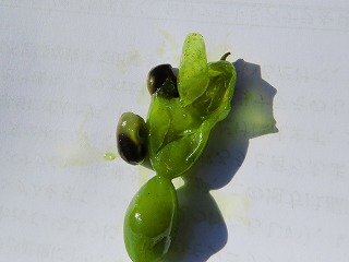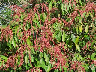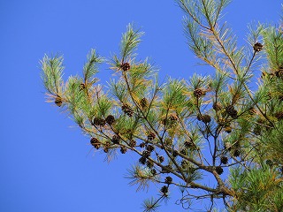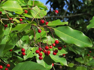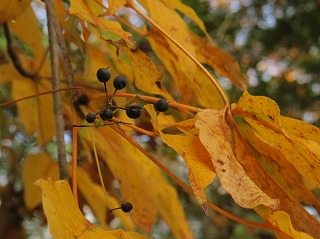 【左】エンジュ(植栽)の果実     【中】アカマツ(マツボックリが多すぎ、枯死心配)     【右】カンレンボク(ヌマミズキ科・原産地は中国雲南省)