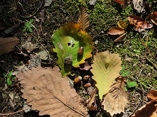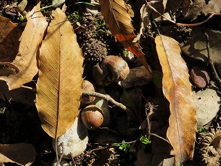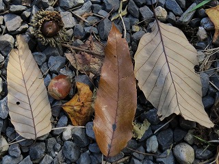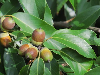 【左】アベマキ          【中】クヌギ(植栽?)         【右】タマバチの仲間がが作った虫こぶ