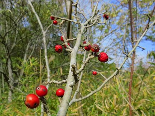 【左】カマツカ                 【中】ソヨゴ        【右】ノイバラ