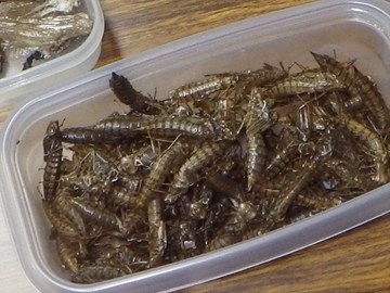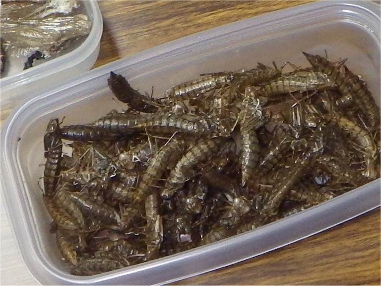 ○菊池氏(奥剣の「池の平小屋」管理人)が小屋の下に広がる湿地で採集したしたトンボの殻を持参