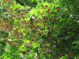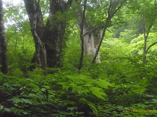 【左】元気に登山 【中】ブナ林 【右】トチノキの大木