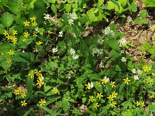 【左】ヤマキケマン 【中】チゴユリ 【右】クジャクシダ