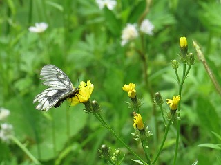 【左】コウゾリナに来たウスバアゲハ(ウスバシロチョウ) 【中】池とヒルムシロ 【右】トキソウ