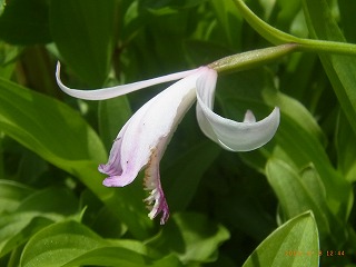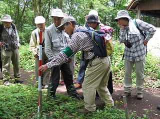 2日目は、福井県自然観察指導員、北川氏のガイドで福井県自然保護センターの観察会に参加しました。テーマは、「シソバナタツナミソウの観察」でしたが、それ以外にもササユリ、キンラン、たいそう立派なナルコユリ等の花を見ることができました。また、ムササビの葉の食み後、シカ、イノシシ、クマの樹皮の剥ぎ方の違い、観察中のエピソードなど興味深いお話も伺うことができました。