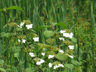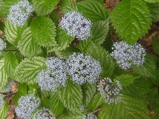 【左】コアジサイ 【中】イカリソウ(赤花?) 【右】ミヤマガマズミ
