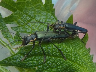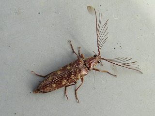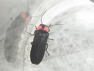 【左】ヒゲコメツキ(宿の近くで) 【中】オビカレハ 【右】アオジョウカイ