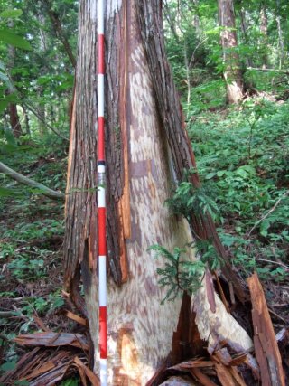 ・なわばりを示すマーキング?(WMO) ・B:ネムノキの樹皮剥ぎ=冬場の好物。 ・糞からスギの樹皮や木片が出る。