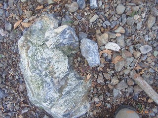 【左】コガネマイマイ? 【中】ナガレヒキガエル 【右】チャート。夜叉が池付近の岩石