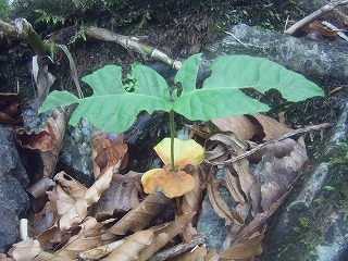 【左】ブナの発芽 【中】ツクバネソウ 【右】ミヤマシキミ