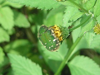 【左】アサギマダラ 【中】ヒナバッタ 【右】コアオハナムグリ