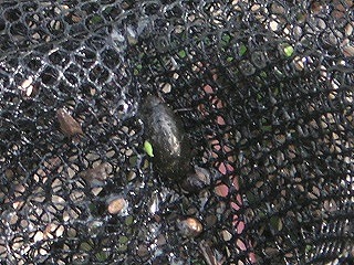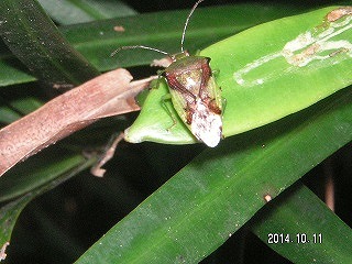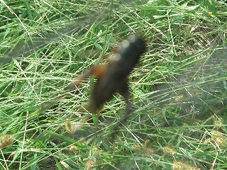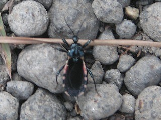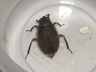 誰も来ないだろうと思いつつ集合場所に向かいました。いなかったら延期するつもりでした。しかし着いてびっくり浅井さんが待っていました。さらに門脇さんも来てくれました。3人で調査開始です。名和新池東のため池まで前回のコースを歩いて調査しました。そこからさらに東に少し行った三叉路を左折(前々回は直進)して突き当りまで調べユーターンして元来た道を集合場所に戻りました。期待した駐車場(集合場所)の草むらは草刈りがされて虫が少なくがっかりでした。急坂頂上付近の草むらは路上まで草が生い茂り、チョウ、カメムシ、バッタが跳びまわり楽しく調査できました。新池の調査は岸辺を歩いてトンボを探しましたがイトトンボ一匹見つかりませんでした。東のため池でやっとシオカラトンボとアジアイトトンボを見つけホッとしました。門脇さんが近くでアキアカネを見つけました。長靴とタモ網姿の浅井さんがため池の中を調べてくれました。ザリガニだらけの中にコオイムシとヒメガムシが見つかりました。三叉路から突き当りまでの農道付近でホソミオツネントンボや赤とんぼ類が見つかりました。元来た道を引き返しながら虫探しを続け駐車場で分かち合いをして調査会を終了しました。