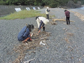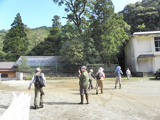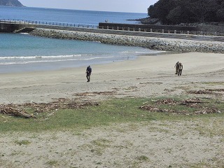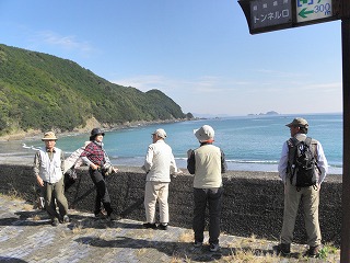世界遺産、熊野古道の人気のルート「馬越峠」。その周辺紀北町海山区を中心に観察旅行を実施しました。  1日目は、紀北町の自然に詳しい伊藤先生にガイドをお願いし、充実したポイントでの観察を行いました。まず、島勝神社樹叢(県指定天然記念物)では、バクチノキの花、金網に張り巡らされたウメノキゴケ、ナギ、ムロマムシグサ等のほか、南方系植物、リュウビンタイ、ナチシダ、ビロードムラサキなどを確認しました。ビロードムラサキはここが北限となっている暖地性落葉灌木で、葉は、細かい毛で覆われ、まさにビロードの感触でした。その後、島勝港に向かい、美しいライトブルーのソラズズメダイやメジナ、ガンガゼなどを見ることが出きました。船越海岸に移動し、島勝の海食洞門を確認し「ハマナツメ」の自生地船越池周辺を散策しました。ハマナツメは、三重県が北限と考えられており、別名「鳥止まらず」とも言われ幹は鋭い棘で覆われていました。その後、船越海岸で磯、大白池と海岸でビーチコーミング、鳥や魚、カニなどを観察しました。捕らえたメジナは、透明の容器に入れ置く場所の色で体色が変わるさまを確認しました。