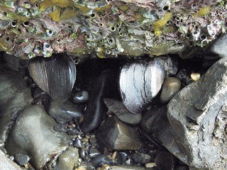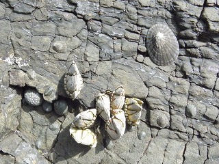 コウベマイマイ?、マツバガイ、カメノテ、イシダタミガイ、イガイ、イボニシ、イソニナ、ケガキ、ヒザラガイ、