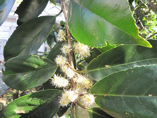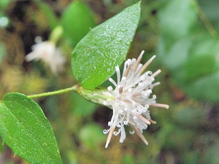 【左】バクチの花。バラ科、蜜腺が見られる        【中】リュウビンタイが自生        【右】コウベマイマイ?