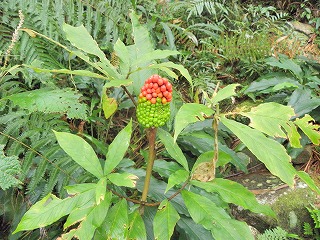【左】ルリミノキ          【中】ムロウマムシグサ?          【右】イズセンリョウ