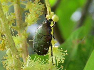 【左】アオドウガネ 【中】ミヤマカミキリ 【右】コアオハナムグリ