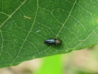 【左】ムネアカチビナカボソタマムシ 【中】オオコフキコガネ? (色が紫っぽいので) 【右】ヤマイモハムシ?