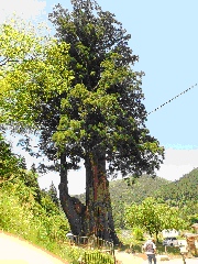 ◆月瀬の大杉 国の天然記念物である樹齢1800有余年、幹回り約14mの杉は見事なものでした。また、矢作川に架かる橋の先は大杉公園でした。