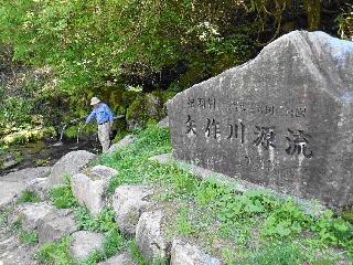 ◆根羽村の矢作川源流地点 ひんやりして気持ちいい水で、水辺には黄色の可憐な花が!