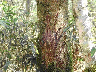 【左】月瀬の大杉  【中】根羽村の矢作川源流地点  【右】クマにより削られたイヌブナ