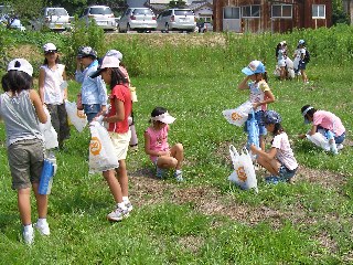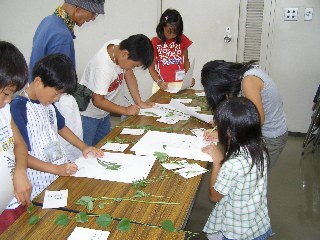 今までは、新聞紙を吸い取り紙としてりようし、毎日吸い取り紙を交換することにより標本の水分を抜く方法で植物標本を作製していました。今年から台紙に標本を置き、図書館などで使用しているブックカバ−で貼り付ける方法で行ないました。これは吸い取り紙の交換の必要が無いため1日できれいな標本を完成させることが出来ます。今までの方法ですと吸い取り紙の交換で挫折してしまい完成まで至らないことがありました。今年から取り入れたブックカバ−を利用しての方法は100パーセント子供たちは植物標本を完成させることが出来ます。しかし、新聞紙に挟んだ植物をていねいに取り扱い、名前を確認しながら吸い取り紙を交換することにより、標本完成時に植物の名前を覚えることが出来る長所がなくなります。