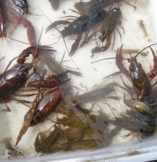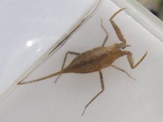 コオイムシの若い固体、ユスリカの一種、アメリカザリガニ、タイコウチ、フタバカゲロウの一種、コガタシマトビケラ、ヒメガムシ、ガガンボの一種、アブラゼミ、ミズムシ(等脚類)