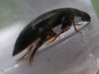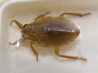 【左】張り切って採集を始めました。 【右】コオイムシの若い固体。
