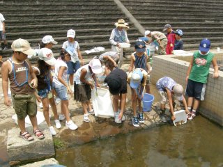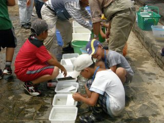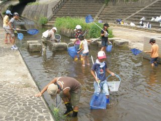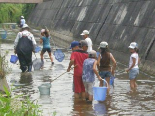 今年は雨が降らなかったため、上流に生息する魚やエビが見られませんでした。それでも魚やエビ以外の川の生き物を多数観察することが出来ました。(記・降幡)
